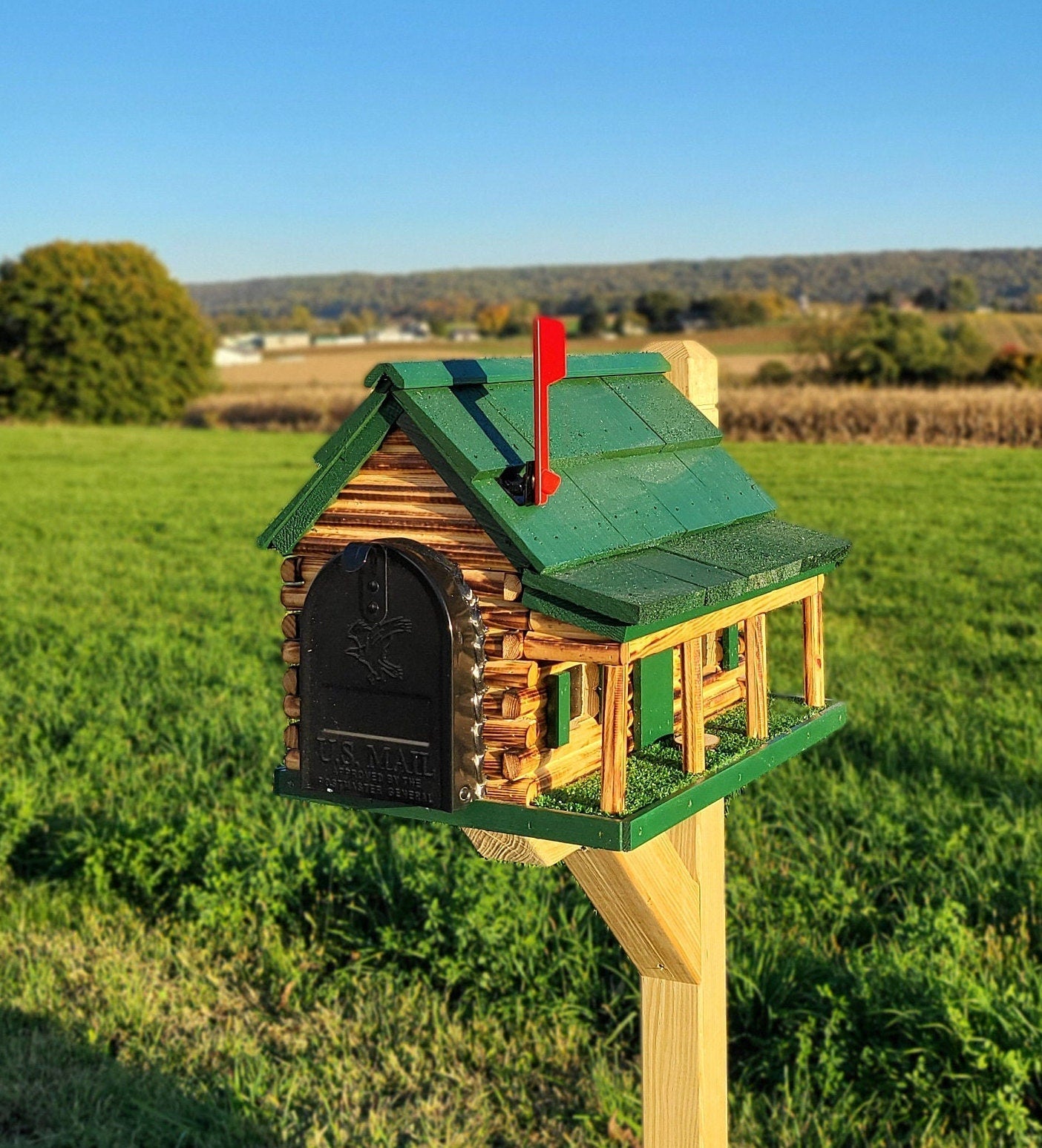 Amish Mailbox - Handmade - Log Cabin Style - Wooden with Metal USPS Approved Mailbox Outdoor