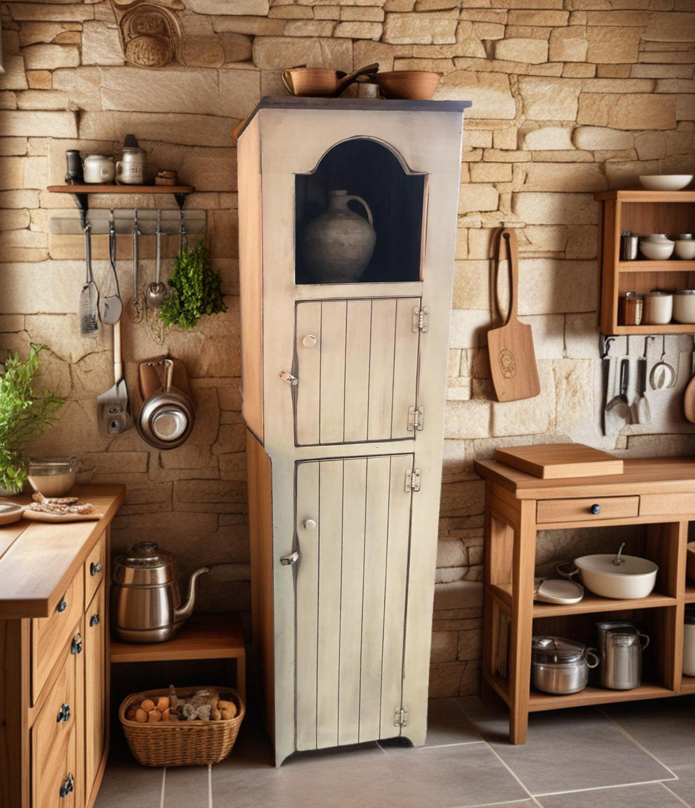 Enhance your living area with vintage allure, our well-designed Amish handmade pantry cabinet transforms any room with elegance, offering an advanced storage solution, crafted beautifully with attention to detail, blending authentic craftsmanship techniques with modern functionality.