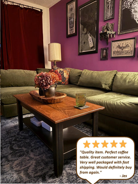 Coffee Table - Fully Assembled - Furniture - Home Décor - Furniture - Living Room Table- Country Decor- Amish Furniture - Primitive - Rustic - Walnut / Black is backordered and will ship as soon as it is back in stock.
