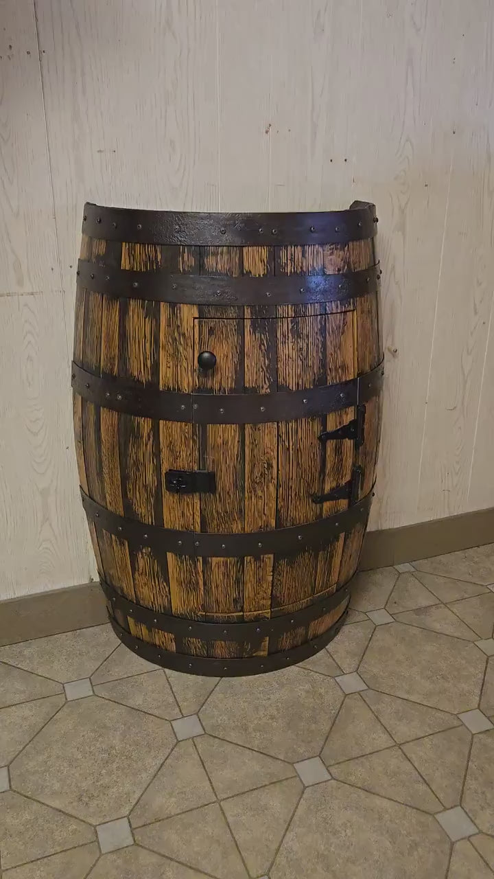 Half Whiskey Barrel Cabinet - Amish Handmade - Bourbon - Liquor Cabinet - Glass Holder - Wine Storage - Display - Whiskey Odor - Vintage