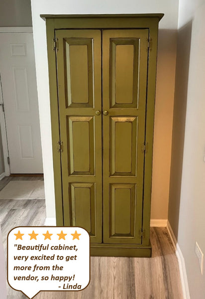 Transform your home with this timeless Amish handmade pantry cabinet, featuring a rustic design and matte black finish, perfect for adding elegance and functionality to any room.