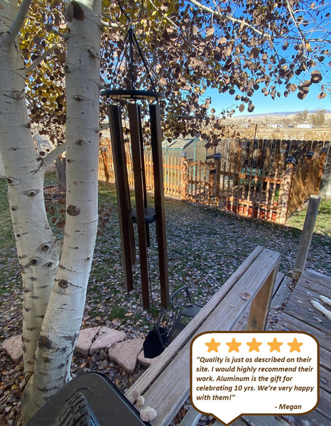 Transform your outdoor space with melodious tunes and natural appeal with our Amish handmade, hand-tuned aluminum wind chimes, coated with a special overlay ensuring weather resistance, durability, and longevity. Convert your patio, garden, or backyard into a healing soundscape, infusing beauty, and sound, will surely create a warm, inviting sensation in your safe haven.
