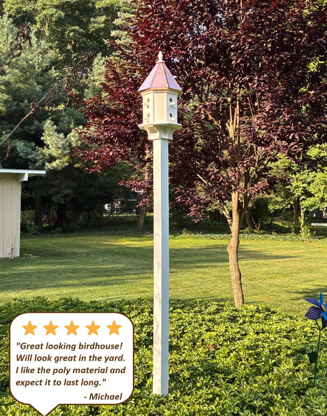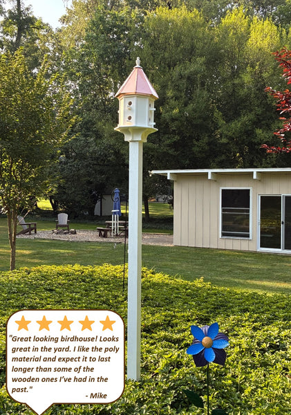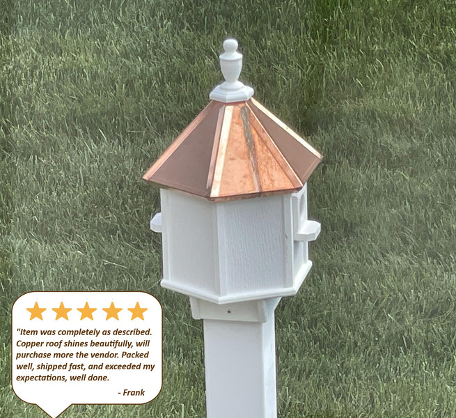 Bird House With Copper Roof Amish Handmade, Extra Large With 8 Nesting Compartments, Predator Guard Weather Resistant, Bird Lovers, Poly - Eight / Perch is backordered and will ship as soon as it is back in stock.