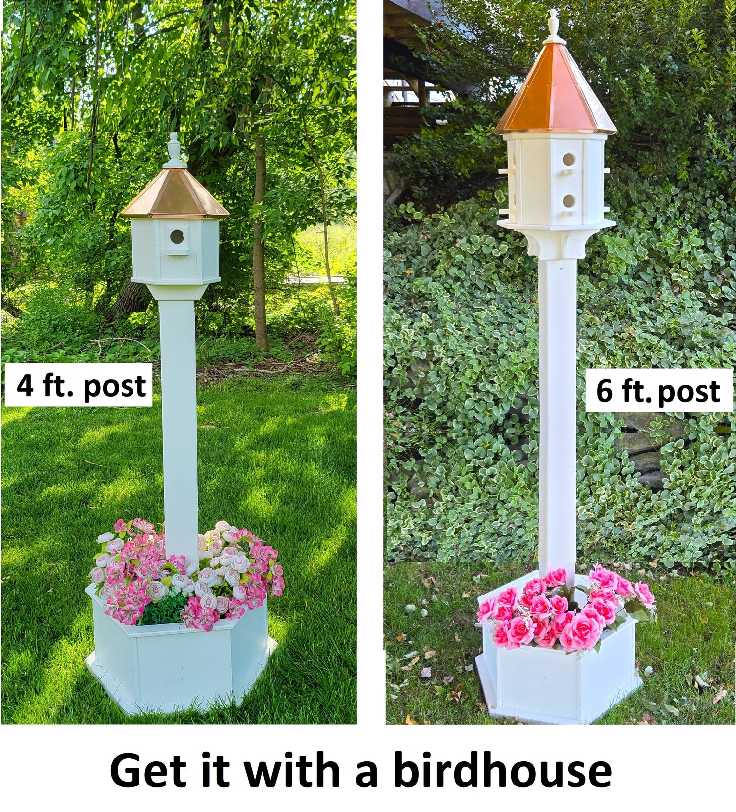 Planter Kit For Birdhouses and Bird Feeders - White - Set of Planter & Post - Amish Handmade - Bird Lovers - Flowers - Outdoor Décor - Planter Only is backordered and will ship as soon as it is back in stock.