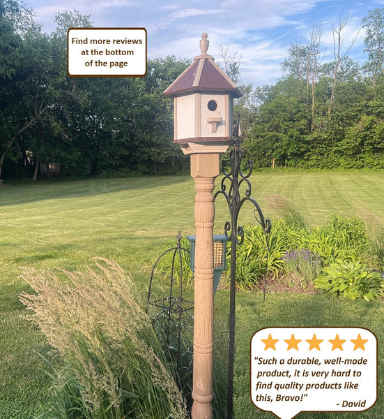 This spacious X-Large Amish-crafted poly birdhouse is sure to make a bold statement in any flower garden, yard, or nature sanctuary. Built with exceptional craftsmanship, its sturdy construction ensures it withstands the test of time, offers ample nesting space for a variety of birds, and invites a peaceful haven for them to settle and thrive.