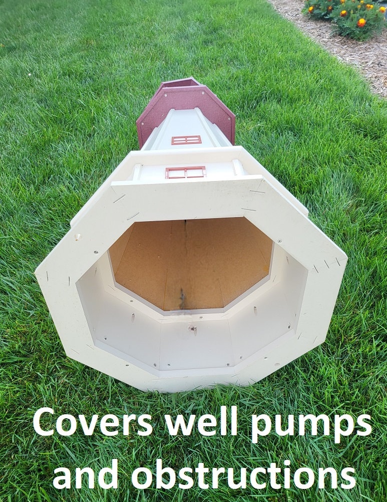 This well-designed lighthouse will accent any area beautifully, it not only serves as a decorative piece but also functions as a cover for any unwanted openings, it covers any well pipes and obstructions.