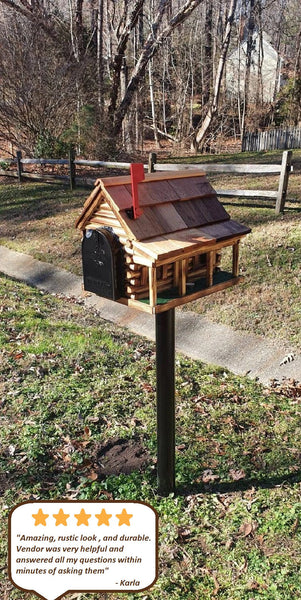 Amish Mailbox - Handmade - Log Cabin Style - Wooden with Metal USPS Approved Mailbox - Outdoor