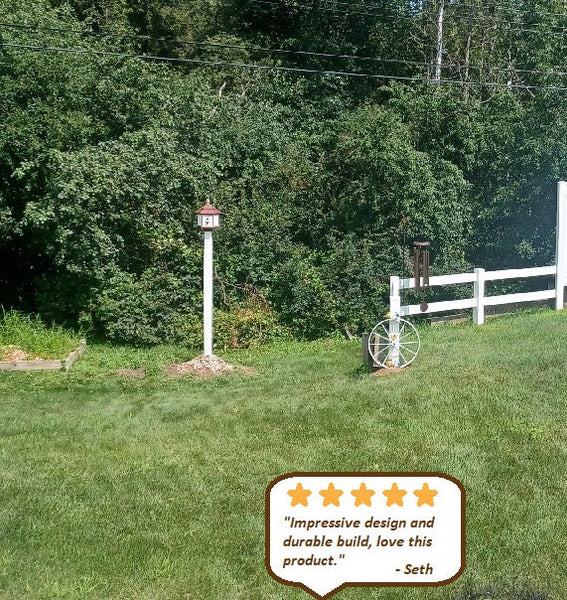 * Easy mounting on a 3.5” by 3.5” post (not included), just place the feeder and you're ready to go.
