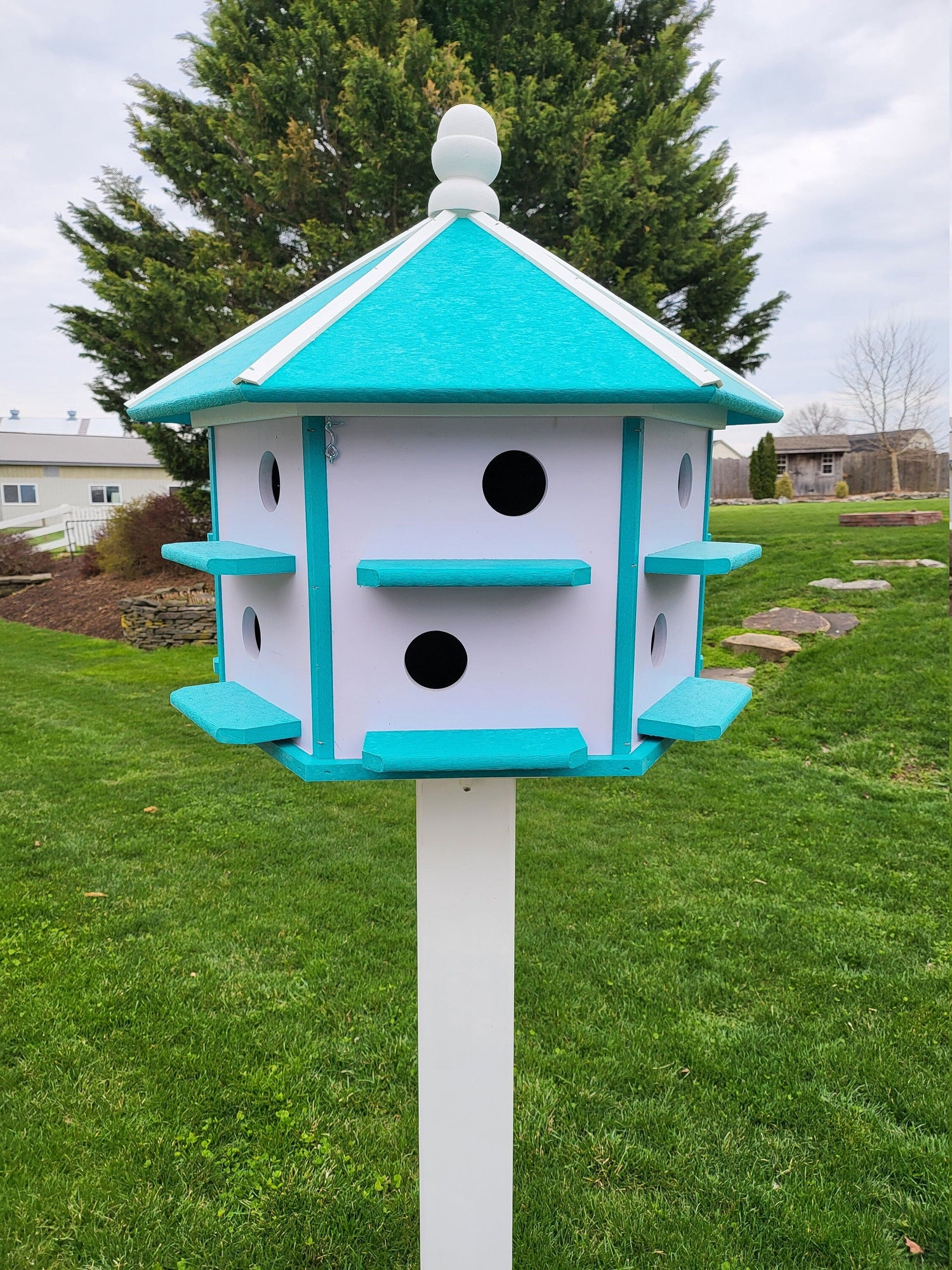 Birdhouse Purple Martin Amish Made 12 nesting Compartments Garden Décor Poly Purple Martin Bird House Outdoor - Teal is backordered and will ship as soon as it is back in stock.