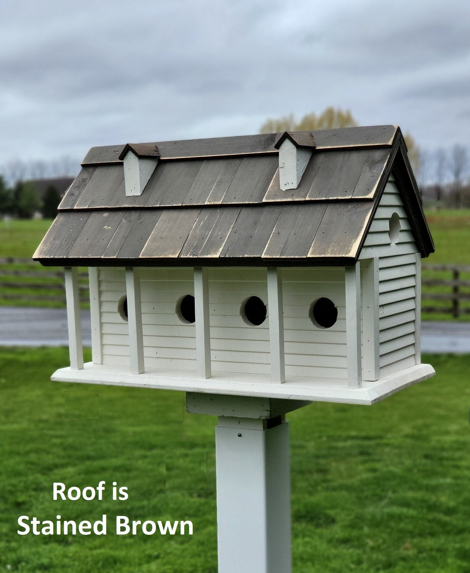 White Purple Martin - Bird House - Amish Handmade Primitive Design - Bird Lovers - 6 Nesting Compartments - Birdhouse outdoor - White / Stained Brown is backordered and will ship as soon as it is back in stock.