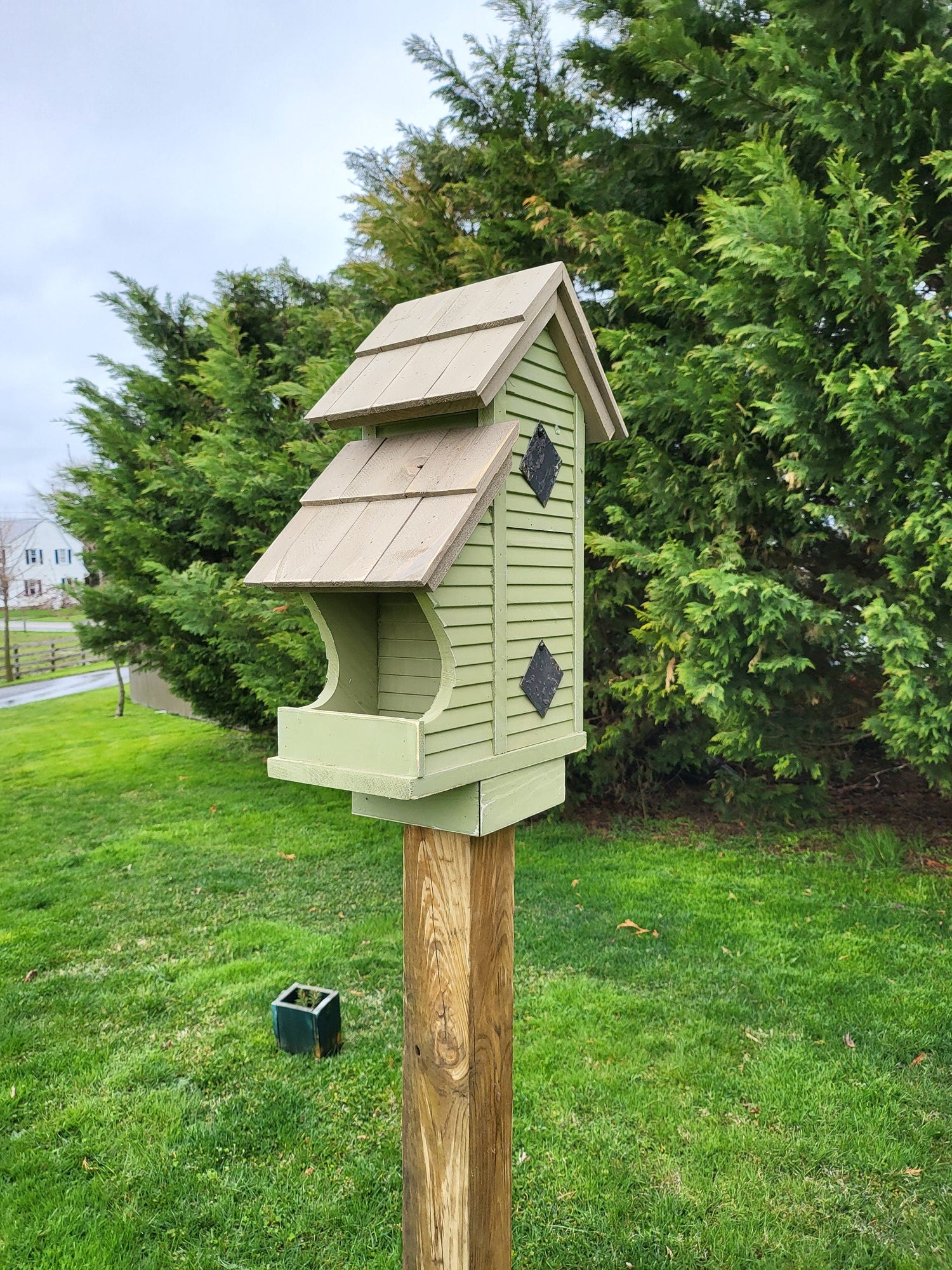 Bird Feeder and House Amish Handmade, Wooden Birdhouse and Feeder Combo