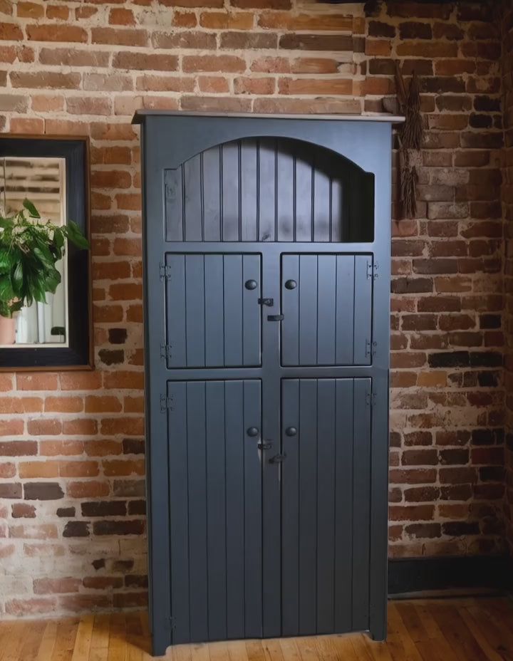 Enhance your living area with vintage allure, our well-designed Amish handmade pantry cabinet transforms any room with elegance, offering an advanced storage solution, crafted beautifully with attention to detail, blending authentic craftsmanship techniques with modern functionality.